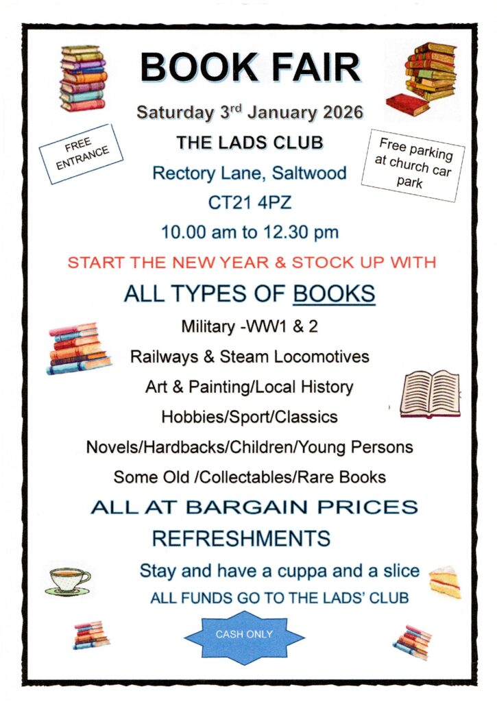Lads’ Club Bookings: Jan Heard 01303 266945 email: jan.entendu@gmail com